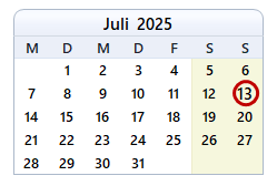 | Vergangenen Monat | Diesen Monat | Nächsten Monat |
