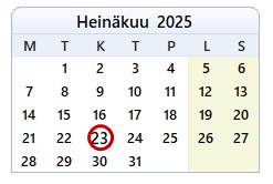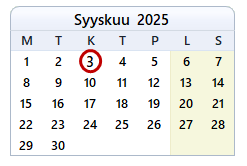 | Viime kuukausi | Tässä kuussa | Ensikuussa |