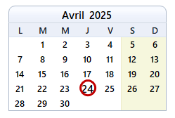 Avec jours fériés et sélecteur de dates.2024 2025 2026 - Calendrier mensuel